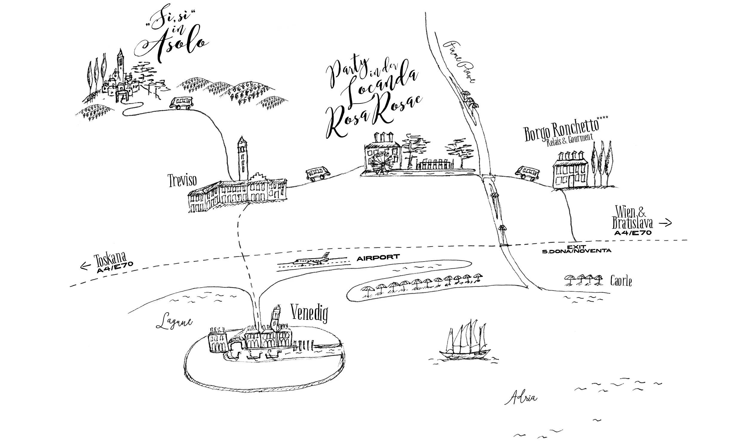 UNSERE GROSSE KLIMATISIERTE HOCHZEITSKUTSCHE HOLT EUCH VOm hotel BORGO RONChETTO AB. FINDET EUCH BITTE BEI DER REZEPTION EIN.